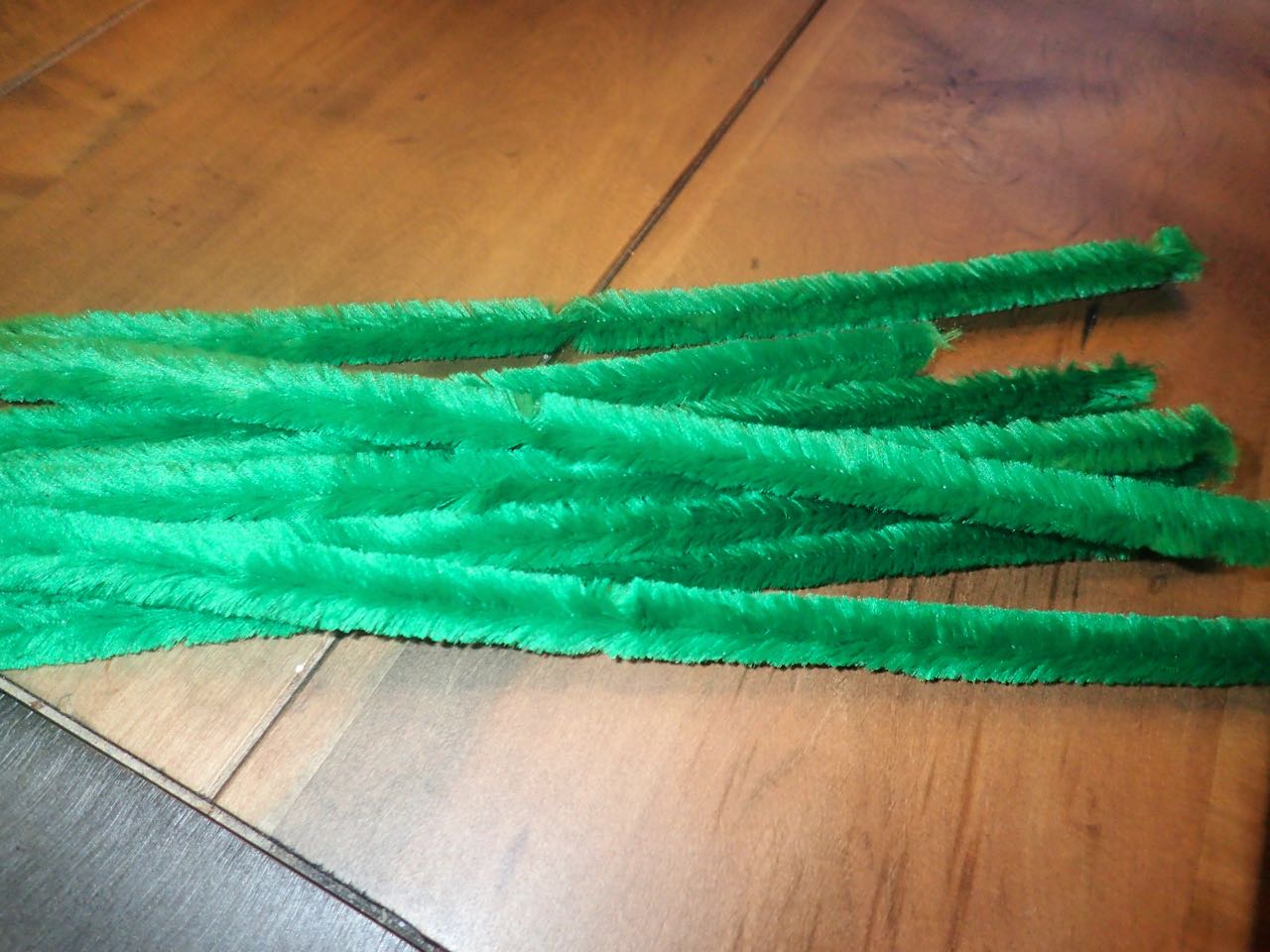 Get materials: green and red pipe cleaners